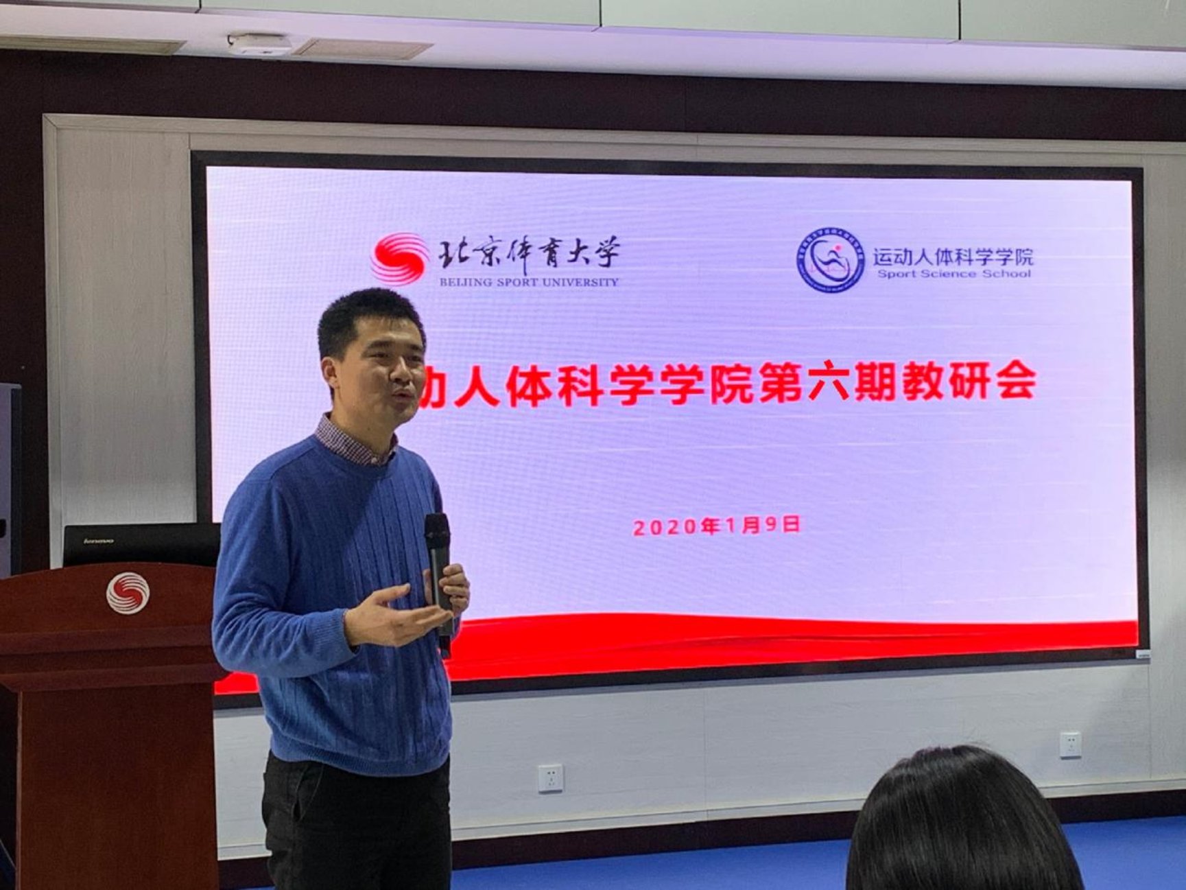 为构建涵盖核心价值塑造、基础素质夯实、综合素养提升的通识课程体系,有效促进学生素质全面发展,长效支撑学生未来发展,运动人体科学学院于2020年1月9日上午10点,在教学实验楼322实验室举办了以通识教育认识分享为主题的“运动科学教研会”。本次教研会是2020年第一期也是总共第六期教研会。2019年11月,我院派出赵星、周财亮、李翰君3位老师,赴上海复旦大学就通识课程进行了学习和交流。本次教研会上,三位老师分别基于复旦之行分享了各自的学习收获及对通识教育的思考见解。学院院长王荣辉、分党委书记雷厉、副院长于亮,以及学院全体教师参与了此次教学研讨,教研会由于亮副院长主持。
