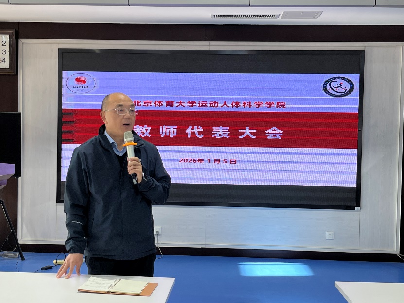 运动人体科学学院于2026年1月5日上午10时在教学实验楼322会议室召开了运动人体科学学院2025年度二级教代会(教职工代表大会)。分党委书记许寿生、院长刘卉、副院长赵星、周财亮及运动人体科学学院全体教职工参加了此次会议。会议由学院分工会组长吴洪宇老师主持。
