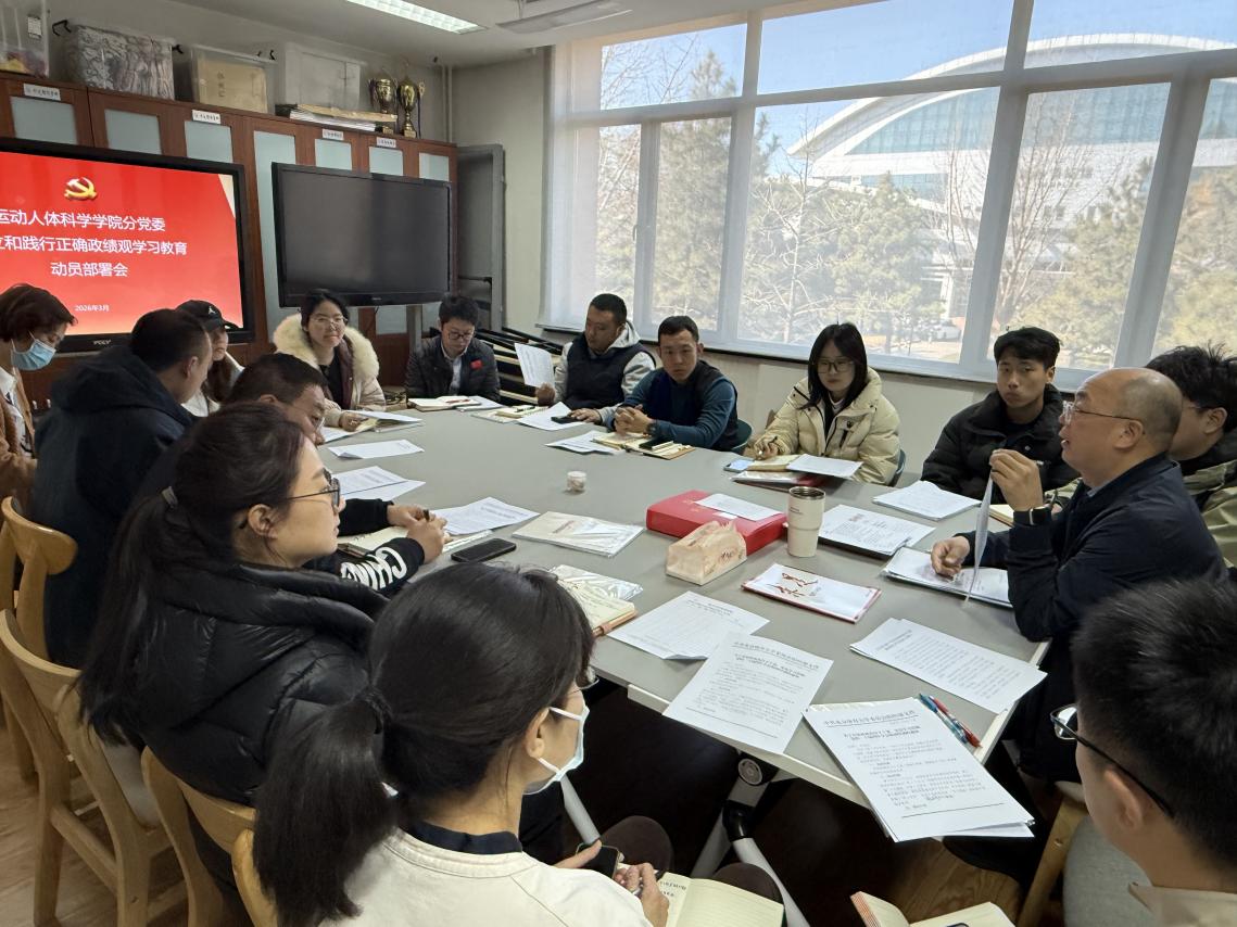 会议强调,党和国家统筹推进教育强国、科技强国、人才强国建设,对高等教育的期望比以往任何时候都更为迫切。学院上下要坚持系统观念,深入落实党的二十届四中全会精神,认真学习两会精神,将解决思想认识问题和解决实际问题结合起来,确保学习教育高标准启动、高质量推进,把学习教育成果转化为推动学校高质量发展的实际成效。运动人体科学学院分党委所属14个党支部均已启动树立和践行正确政绩观学习教育工作。