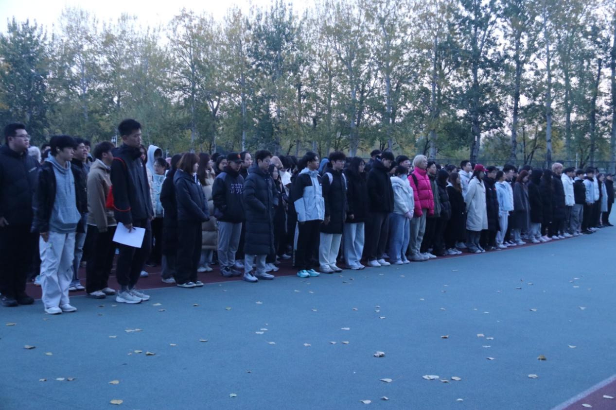 11月3日星期一早上6:30,北京体育大学运动人体科学学院在英东田径场举行升国旗仪式,运动人体科学学院2025级、24级、23级本科生和学院及中国运动与健康研究院2025级研究生300多人以班级单位列队集合。学院领导班子全体成员许寿生、刘卉、赵星、周财亮和分党委委员吴晓薇、辅导员老师娄立天、刘鸿瑞、厉芷扬、刘欣然、路明月、武薇、教务员高超老师等一起出席活动。升旗仪式由2025级本科生苗子湜同学主持。