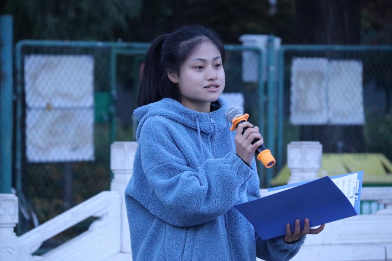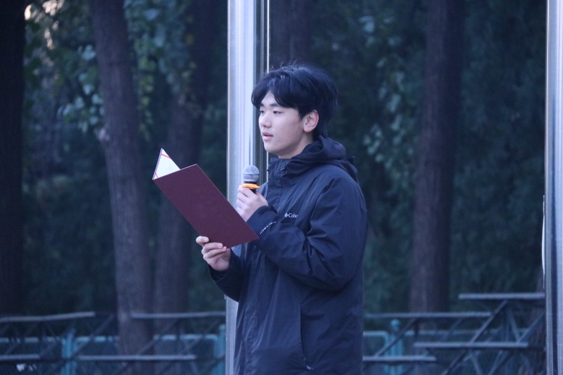 2025级本科新生代表李灿然同学在发言中回顾了中华民族从革命战争到民族复兴的伟大历程。她号召同学们铭记历史、缅怀先烈,牢记“天下兴亡,匹夫有责”的誓言,传承奋斗精神,肩负起时代赋予青年的民族重任。此外,她还鼓励我们要在新时代延续红色血脉,发扬北体精神,用行动诠释青年一代的责任与担当。
